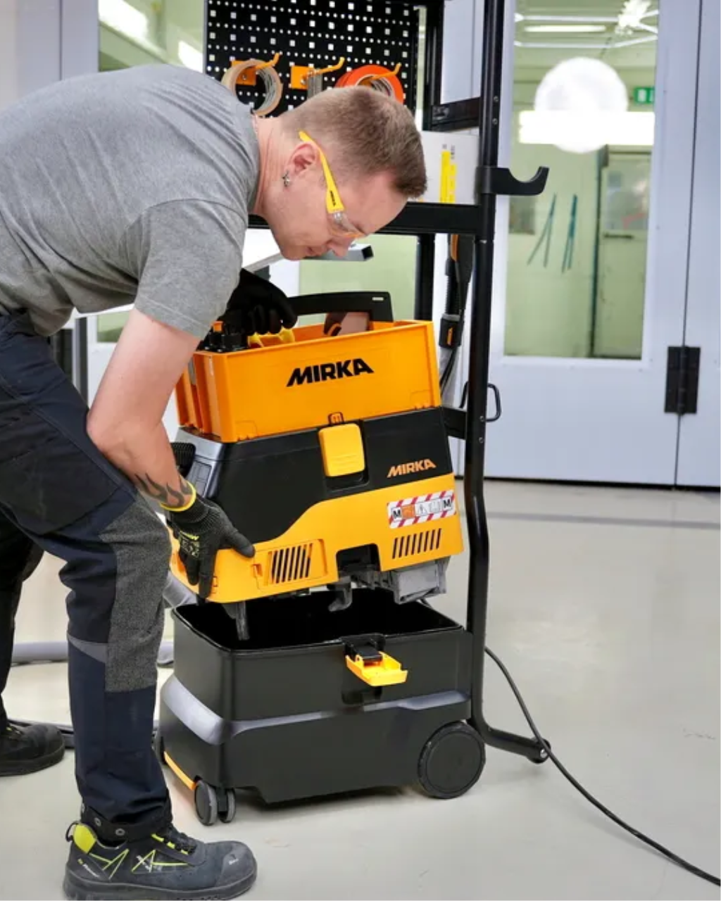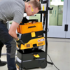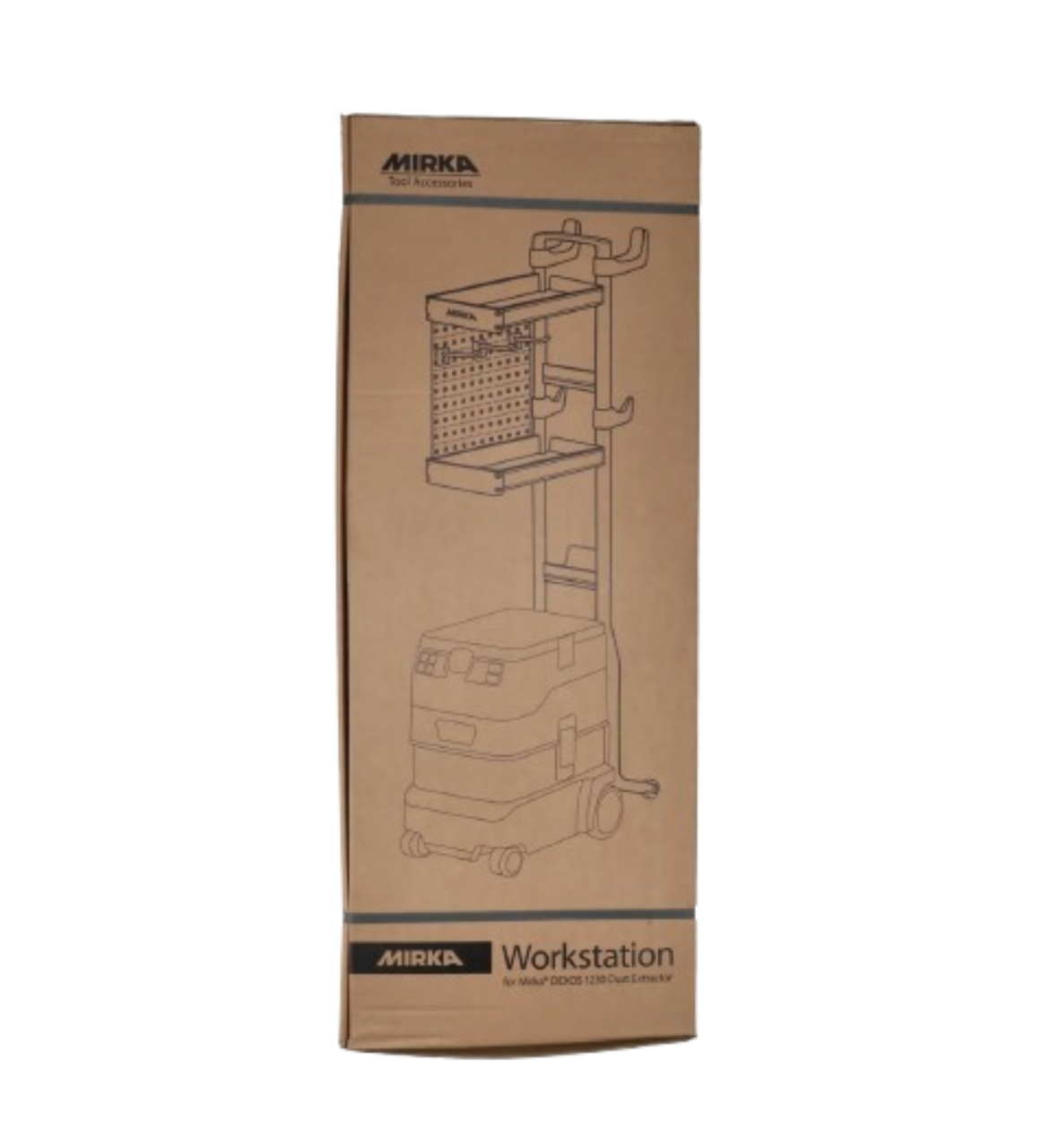 La station de travail DEXOS 1230 offre un rangement organisé pour les outils et les abrasifs. Elle se fixe facilement au DEXOS et ne gêne pas l'accès lorsque le sac à poussière doit être remplacé.